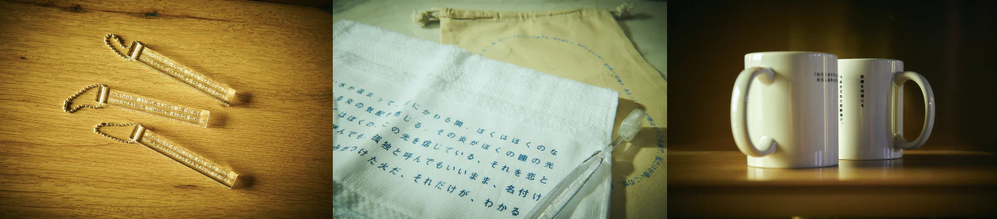 さらに今回は9月7日の宿泊開始に先駆けて、京都市後援、京都市交通局協力のもとで「詩のホテル」と連動した特別な展示をスタート。「旅のすべてが詩だったら?」というコンセプトのもとホテルを飛び出し、HOTEL SHE, KYOTOが位置する京都市南区の周辺地域(銭湯、周辺店舗など)にも最果さんが書き下ろした「詩の広告」を順次展示します。「詩の広告」をはじめとする本プロジェクトの印刷物の印刷・展示については、関西を中心に幅広い印刷を手がける株式会社カンプリの技術協賛のもとで実施をいたしました。