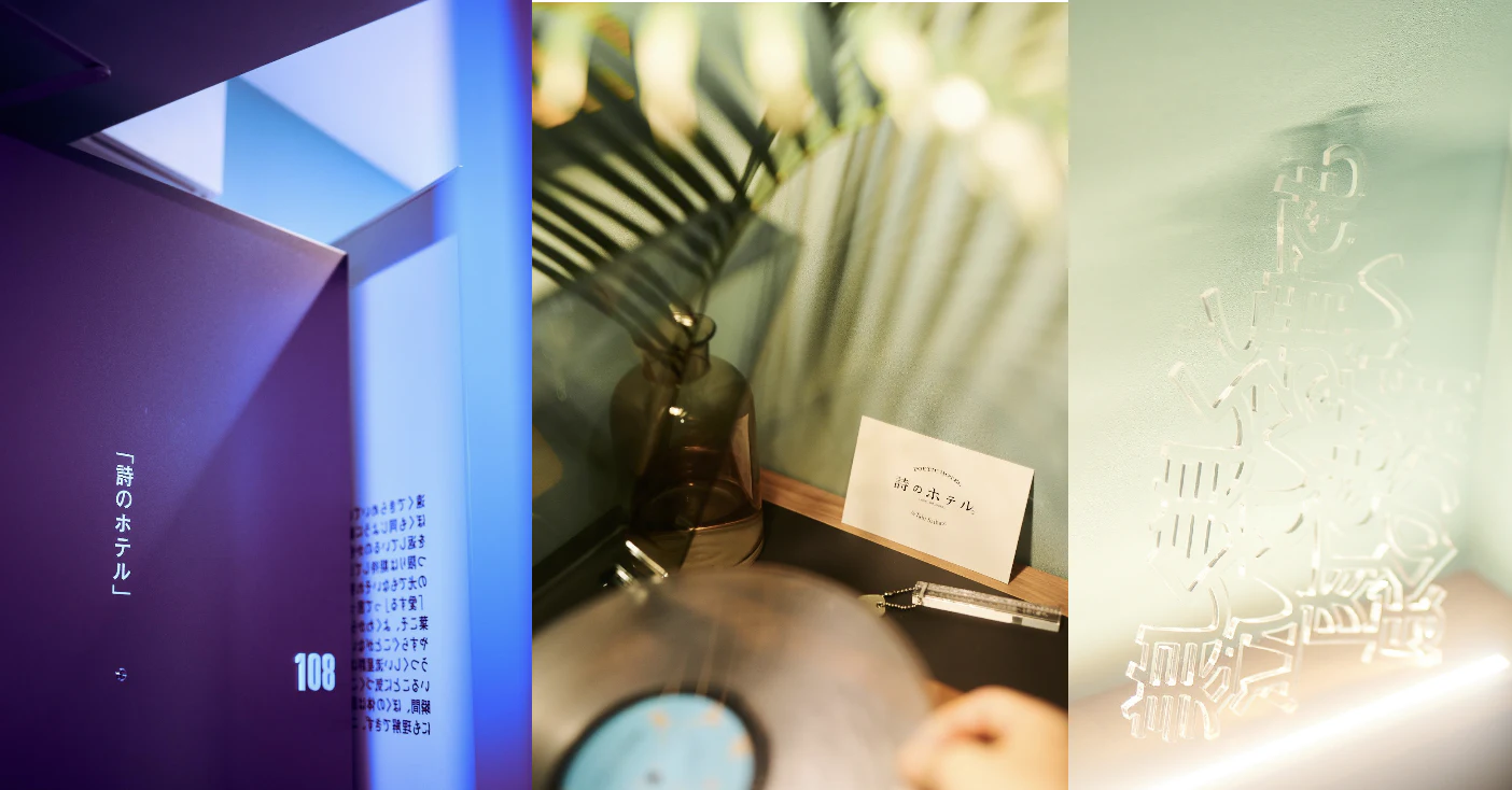 「詩のホテル」は、詩人・最果タヒさんとデザイナー・佐々木俊さんの呼びかけによって2019年12月に実現したコラボ企画。普段、身の回りにあるにもかかわらず、意識を向けることの少ない「言葉」という存在に着目し、「詩に泊まる」というアイデアを具現化したはじめての「言葉の宿泊体験」を提案いたしました。