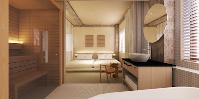 お部屋の中にサウナがあるお部屋。1〜4名様までのお客様にご宿泊いただけます。